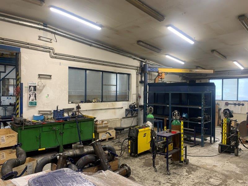 - Ve výrobní hale se nachází celkem 2x Mostový jeřáb nosnost 3200Kg a 2x sloupový otočný jeřáb nosnost 250Kg.